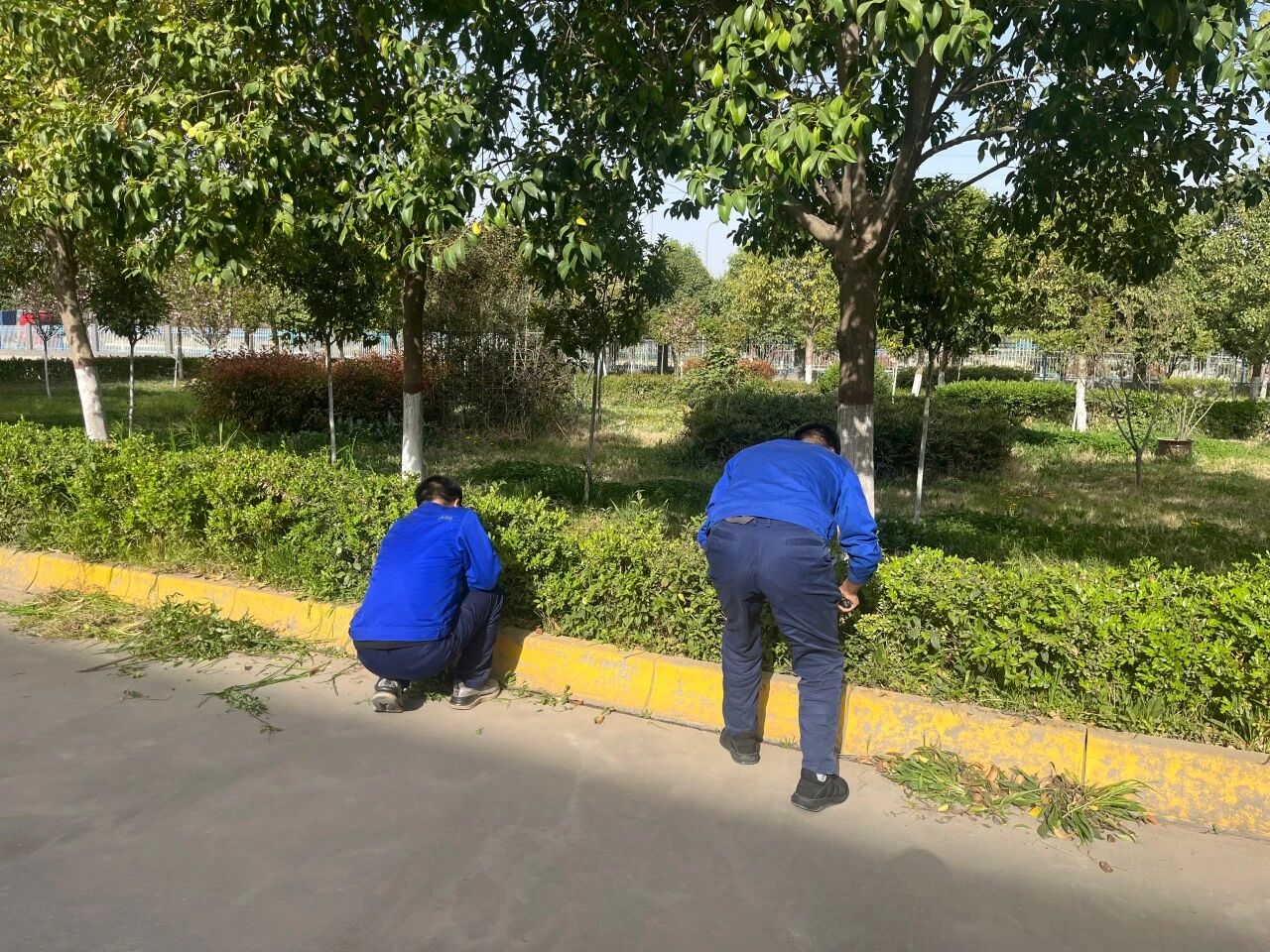 花园维护,打造绿色园区风景线。对园区内花园的乔木、灌木进行修剪,去除枯枝、病枝及过密枝条。同时,根据不同植物的生长需求,实施针对性施肥、浇水、除草作业。